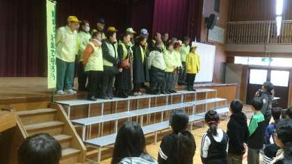 8時30分から、いつも登下校の時に子どもたちを見守ってくださっている、「見守り隊」のみなさんに感謝の気持ちを表す集会を行いました。