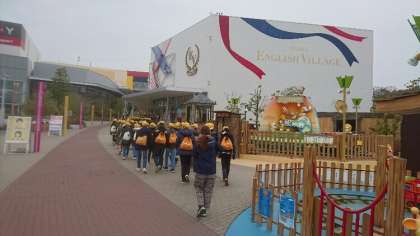 エキスポシティに到着しました。太陽の塔も見えます。まずは、イングリッシュビレッジに入ります。