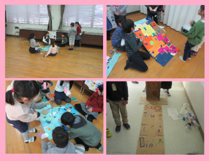 2年生が考えて作ったゲームで、1年生が遊びました。