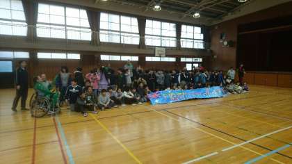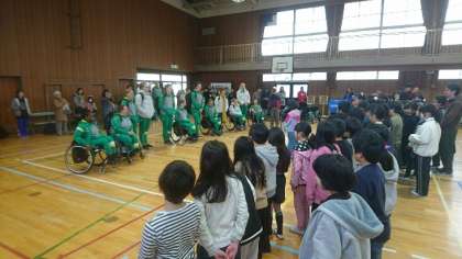 2月14日、国際親善女子車いすバスケットボール大阪大会に出場する、オーストラリアチームのみなさんが、地域親善交流会で市岡小学校に来てくださいました。