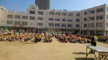 本校の外壁補修のため延期になっていた合同避難訓練を実施しました。地域の皆さんにもご協力いただき、事故もなく安全に訓練を終えることができました。本当にありがとうございました。