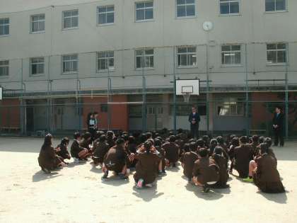 5年生と6年生は、運動場で「5・6年対抗ドッジボール大会」をしていました。