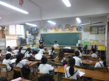 9月3日(水)今日は朝は晴れ、午後から雨になるようです。3年生の教室では夏休みの作品の紹介をしていました。