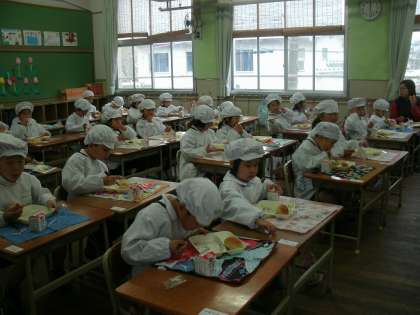 1年2組の給食風景です。