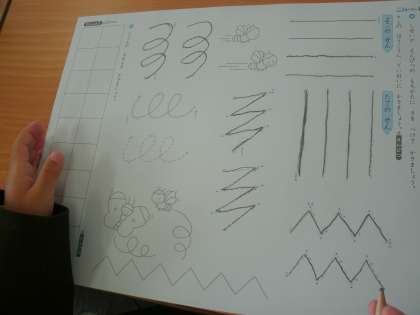 正しい鉛筆の持ち方を確認してから「せんのおけいこ」をしました。