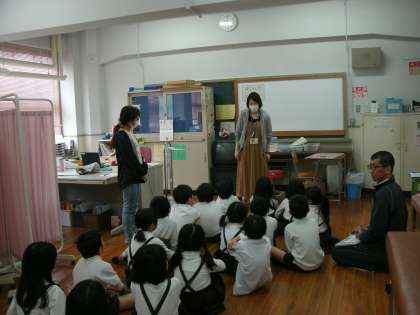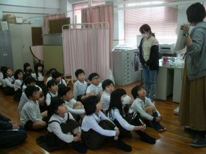 測定前の保健指導では、どんな時に保健室を利用するか、保健室での注意などを確認していました。