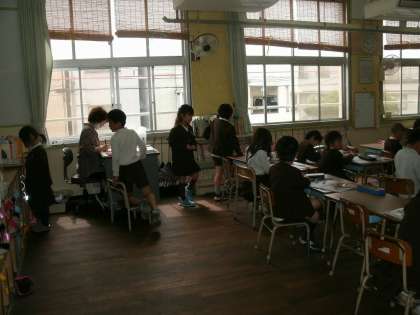 1年生の復習問題が解けたら、担任の先生にチェックしてもらいます。