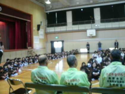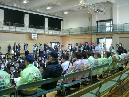 最初に、見守り隊の皆様に、新1年生も含めて「今年度もよろしくお願いします。」とあいさつをしました。卒業生からは、お礼のメッセージ集を贈りました。