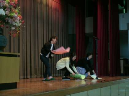 1年生にわかりやすく、教職員がそれぞれ趣向を凝らした自己紹介をしました。