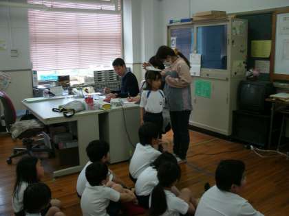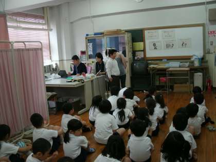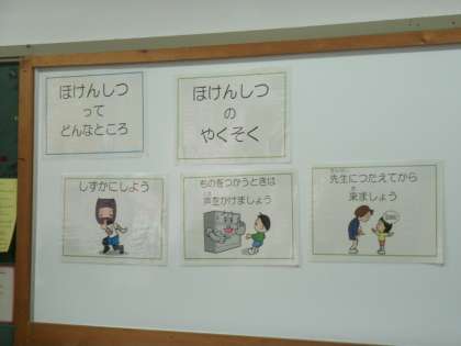 測定前の保健指導では、保健室の約束をしっかり聞いていました。