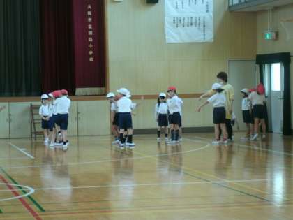 2年生は、体育館で体育の学習をしていました。