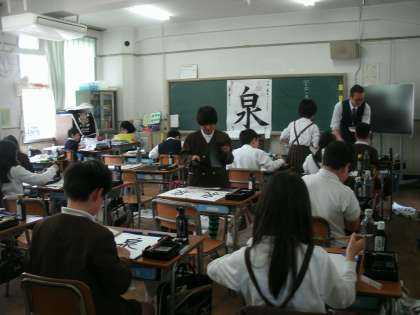 6年1組は、毛筆の学習をしていました。