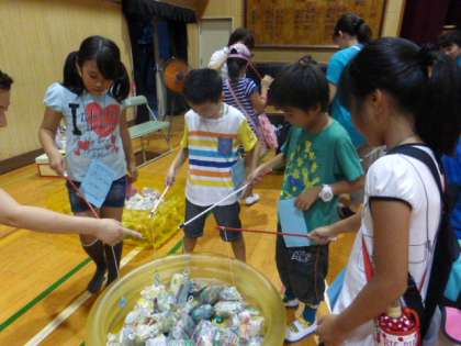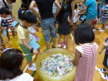 お菓子コーナーの様子です。お菓子の入った袋をつります。
