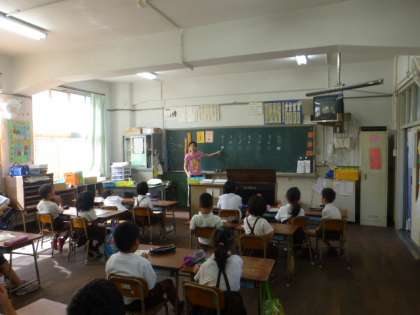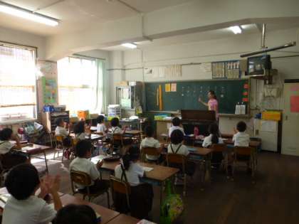 2年生は、音楽の時間に四分音符と四分休符を使って、リズムをとる学習をしていました。