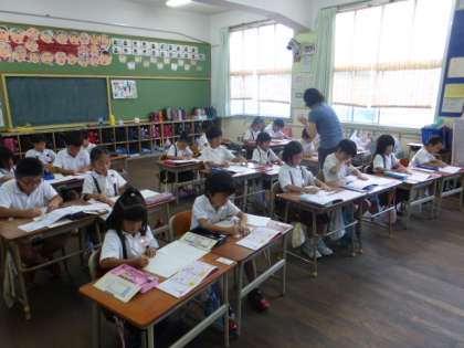 1年生は、国語の時間に漢字の練習をしていました。