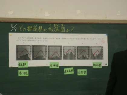 気温と雨の量を表す雨温図を見ながら、どこの都道府県のものか考えていました。