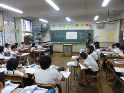 5年生は、理科の時間に「台風と気象情報」について学習していました。