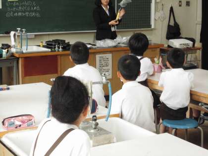 理科で呼吸について学習しました。まわりの空気の(吸う息)と吐いた息の成分の割合に違いはあるのかという疑問を確かめるために実験をしました。気体検知管を使い、酸素と二酸化炭素の割合を調べました。わたしたちが呼吸することで空気の成分はどうなるのでしょうか。環境問題につながる大切な学習です。しっかりと学んでほしいです。