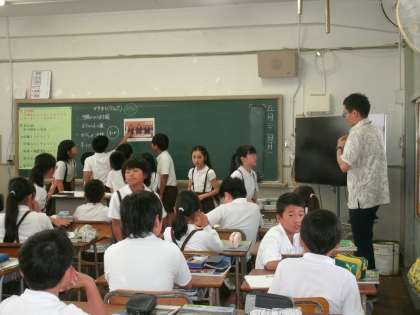 授業者が「かりゆしウエア」を着用して紹介していました。