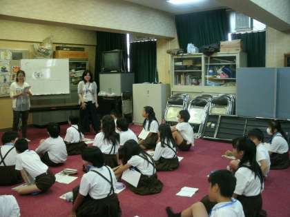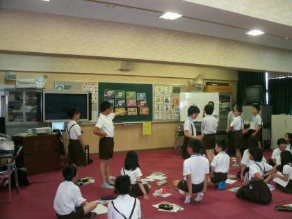 6年1組は、多目的室で外国語活動をしていました。