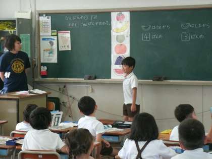 「すいかは上からなんばんめ」「バナナは下からなんばんめ」とくだものの絵カードを見ながら答えていました。