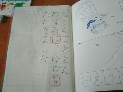 「ねずみは、ゆかをたたきました。」とノートに書いた後、