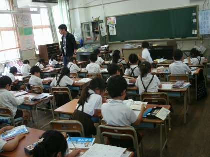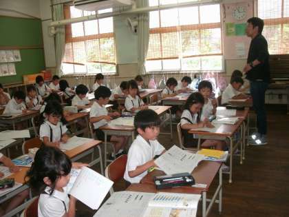 「いくつといくつ」のまとめの学習プリントを配っているところでした。