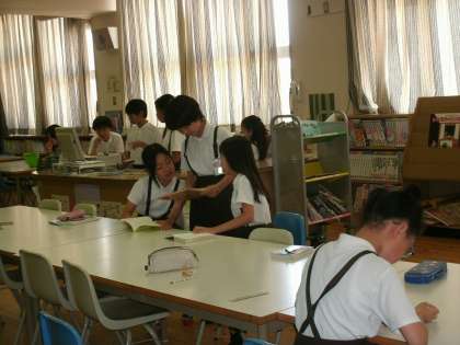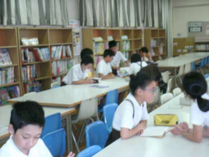 6年1組は、図書室で読書をしていました。
