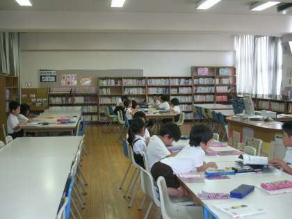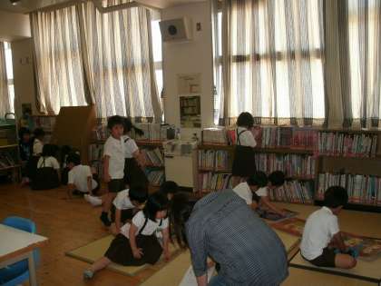 1年2組は、図書室で読書をしていました。