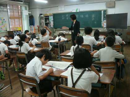 テストの返却の後、1週間のふり返りを原稿用紙に書いていました。