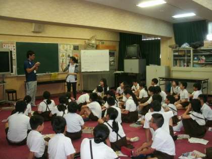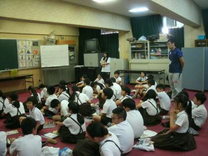 アルファベットのカードを見せ合いながら発音練習をしていました。