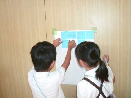 気が付いたことは、各場所に置いてある付箋に書いて模造紙に貼っていきます。