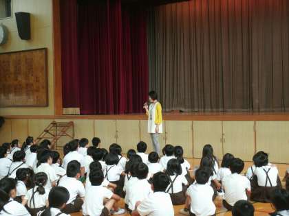 児童集会の最後には、安心・安全な生活について、生活指導部から話をしました。