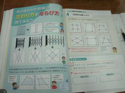 直線の交わり方について、直角がある、ない、の視点で仲間分けをしていました。