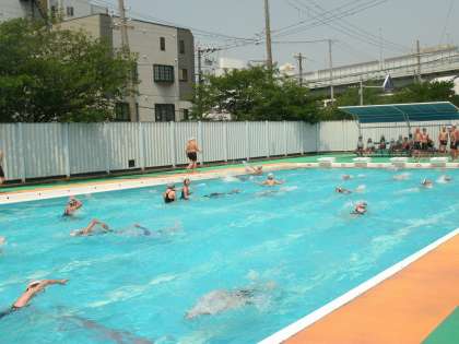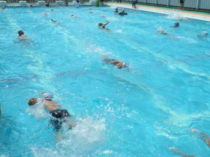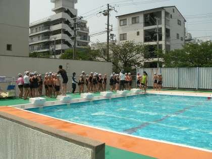泳力別にグループ分けし、コースを決めて泳いでいました。