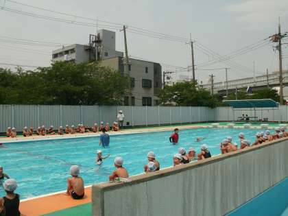 1年生がプール水泳をしているところです。