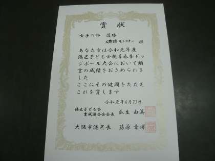 港区子ども会親善春季ドッジボール大会において、女子チームが見事に優勝しました。