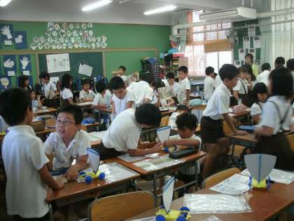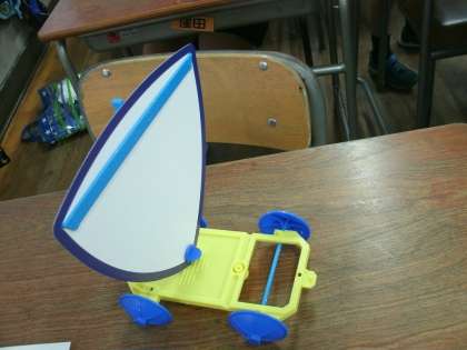 風の強さ、帆の大きさと車の進み方の関係を考えていました。