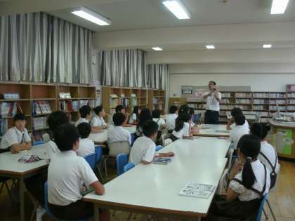6年1組は、図書室で読書をしていました。