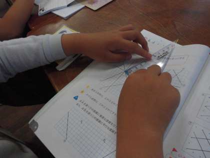 算数で垂直と平行の関係について学習しています。定規の扱いにもかなり慣れてきています。これから様々な形の作図も習います。しっかりと身につけてほしいと思います。