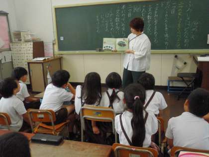 絵本の読み聞かせをしていました。テーマは地球温暖化や環境破壊という重たいテーマですが、子ども向けにわかりやすく書かれていて、みんな興味深く聞いていました。