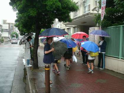 毎月第1・第3月曜日は、港区更生保護女性会の皆さんによる「愛の一声運動」が行われます。今朝は、雨の中、傘をさして子どもたちに声をかけてくださいました。ありがとうございます。