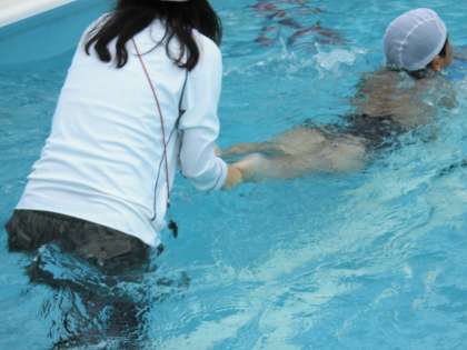 1組2組合同で水泳をしました。6年は現在、平泳ぎの習得に力を入れて取り組んでいます。先生に手を引いてもらったり、足をもってもらってたりして、文字通り手取り足取りで練習していました。