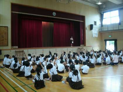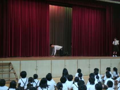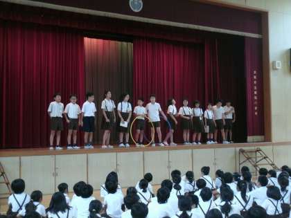 今日の児童集会は、集会委員会による「何が通ったでしょうか。」ゲームです。