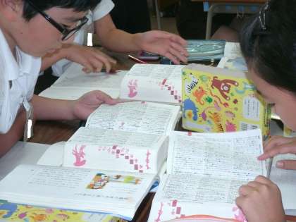 辞書を引きながら、和語、漢語、外来語を調べていました。
