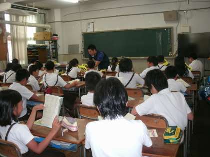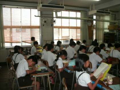 5年生は、出来上がったばかりの林間学習のしおりと歌集を見ていました。