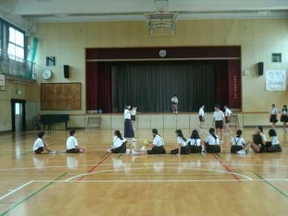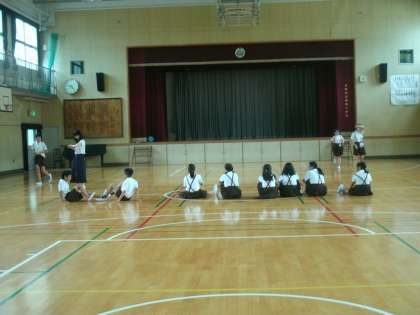 6年2組は、1時間目に体育館で学期末お楽しみ会をしていました。