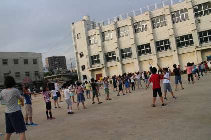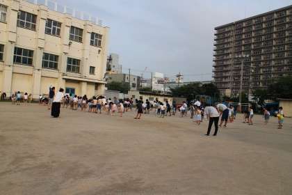 2日目の本日は運動場でのラジオ体操となりました。