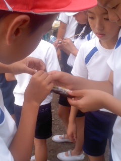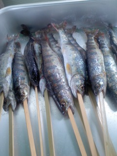 捕まえたあまごは串にさし、炭焼きにしていただきます。