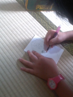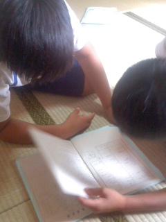 入浴の待ち時間を利用してはがきを書いたり、キャンプファイヤーの打ち合わせをしたりして過ごしています。
